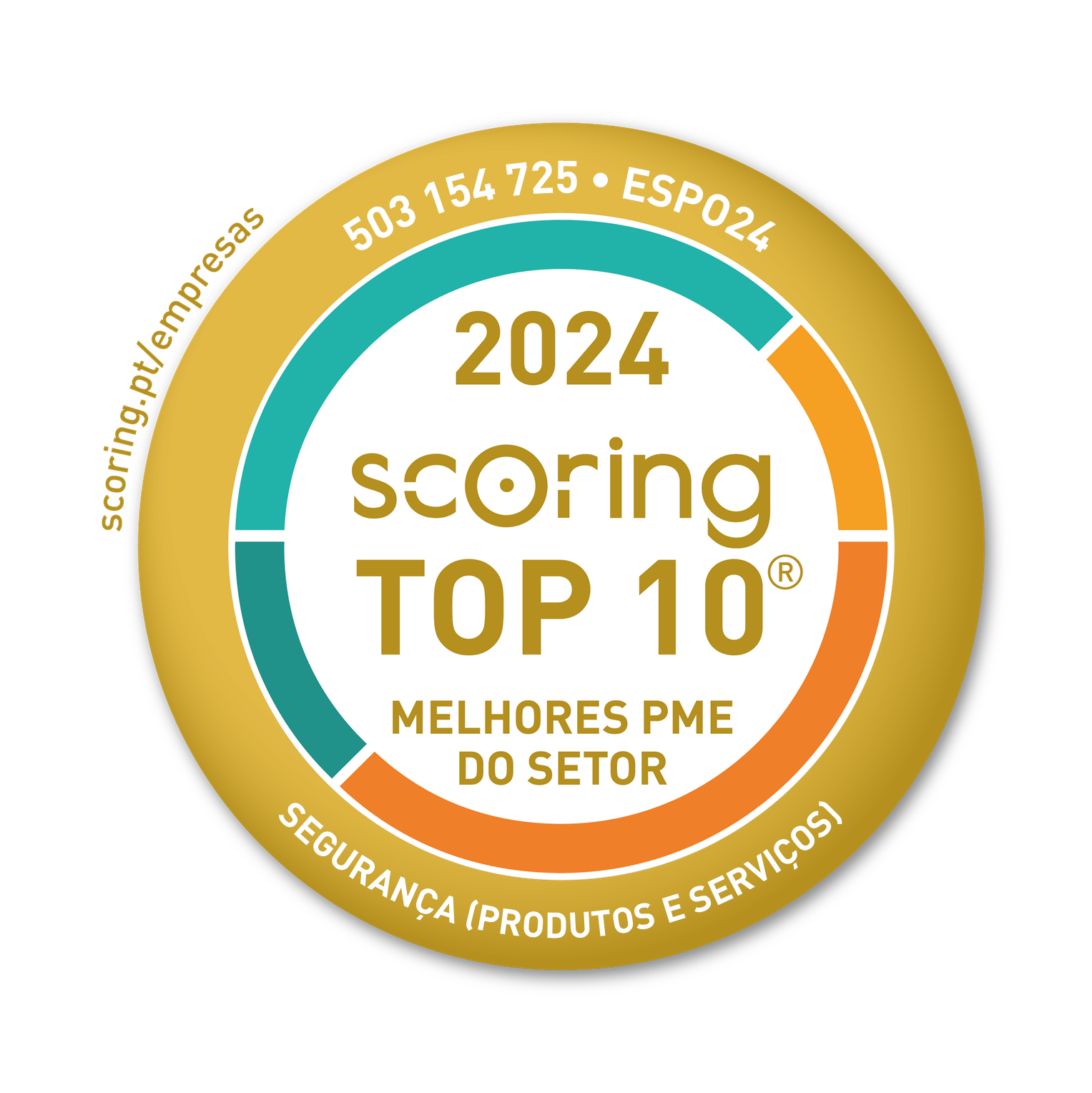 É uma empresa TOP 10 Melhores PME do Setor 2024, porque alia notação máxima de desempenho e solidez financeira a um volume de negócios relevante no setor. Por isso, é uma empresa que se afirma como uma referência de confiança, solidez e futuro no setor Segurança (produtos e serviços). A classificação foi obtida através de um processo de participação transparente, cientificamente validado e auditado por entidades independentes. Resultado: SCORING TOP 10 Melhores PME do Setor / da Região é a mais seletiva e completa distinção no domínio económico-financeiro, em Portugal.